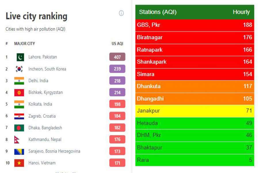 काठमाडौं विश्वकै आठौँ प्रदूषित सहर, यी हुन् नेपालका ‘रेड जोन’ सहर