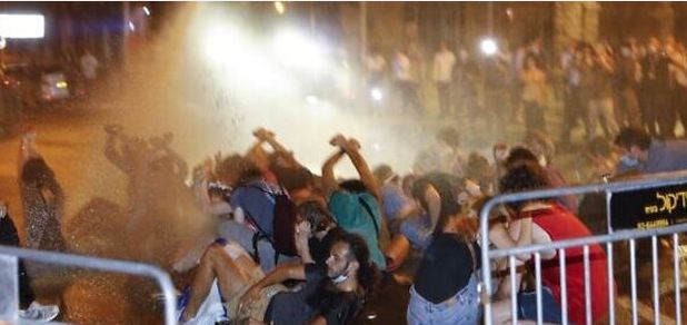 इजरायली प्रधानमन्त्री विरूद्धको आन्दोलन हिंसात्मक बनेको भन्दै सहभागीमाथि पानीको फोहरा