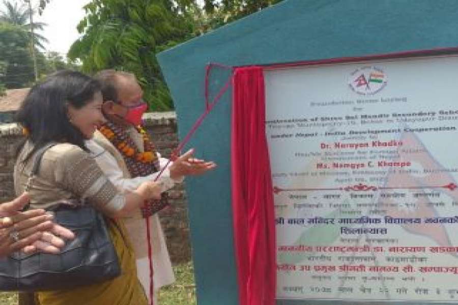 परराष्ट्रमन्त्री खड्काको शिलान्यास मोहः मर्यादा भुलेर भारतीय कार्यवहाक राजदूतसँगै शिलान्यासमा सरिक