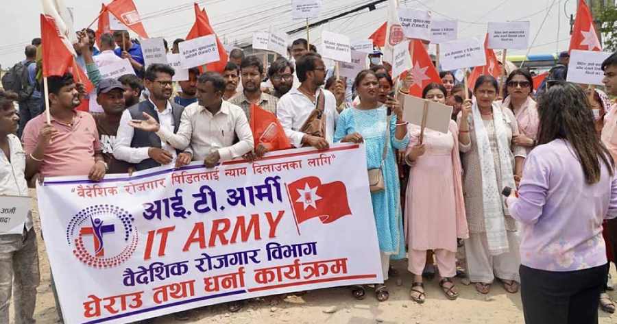 बैदेशिक रोजगार पीड़ितलाई न्यायको माग गर्दै आइटी आर्मीको प्रदर्शन