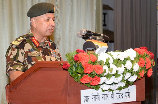 एक संस्थाले नेपाली सेनालाई गमला हस्तान्तरण गर्न आयोजित कार्यक्रममा प्रधानसेनापति क्षेत्रीले यस्तो अभिव्यक्ति दिएका हुन्। उक्त अभिव्यक्ति दिनु एक दिनअघि आइतबार प्रधानसेनापति झन्डै एक घन्टा सेनाको परमाधिवति रहेकी राष्ट्रपति विद्यादेवी भण्डारीसँग मुलुकको पछिल्लो राजनीति र सुरक्षा अवस्थाबारे गम्भीर छलफल गरेको स्रोतले बतायो।