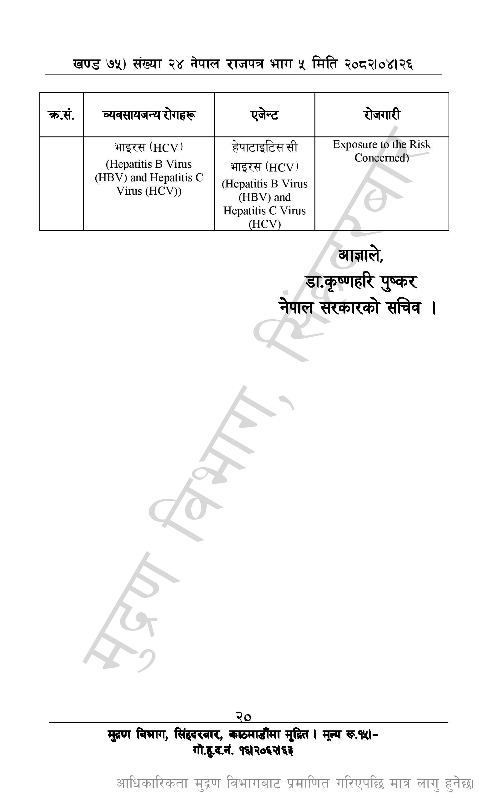 हेर्नुहोस् सरकारले राजपत्रमा प्रकाशित गरेको रोगहरूको सूची :