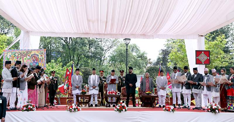 राष्ट्रपति रामचन्द्र पौडेलसमक्ष उनले केहीबेरमा पद तथा गोपनीयताको शपथ लिँनेछन् । प्रधानमन्त्रीले शपथ लिएपछि आजै नियुक्त हुने मन्त्रीहरूले पनि शपथ लिने तयारी छ ।