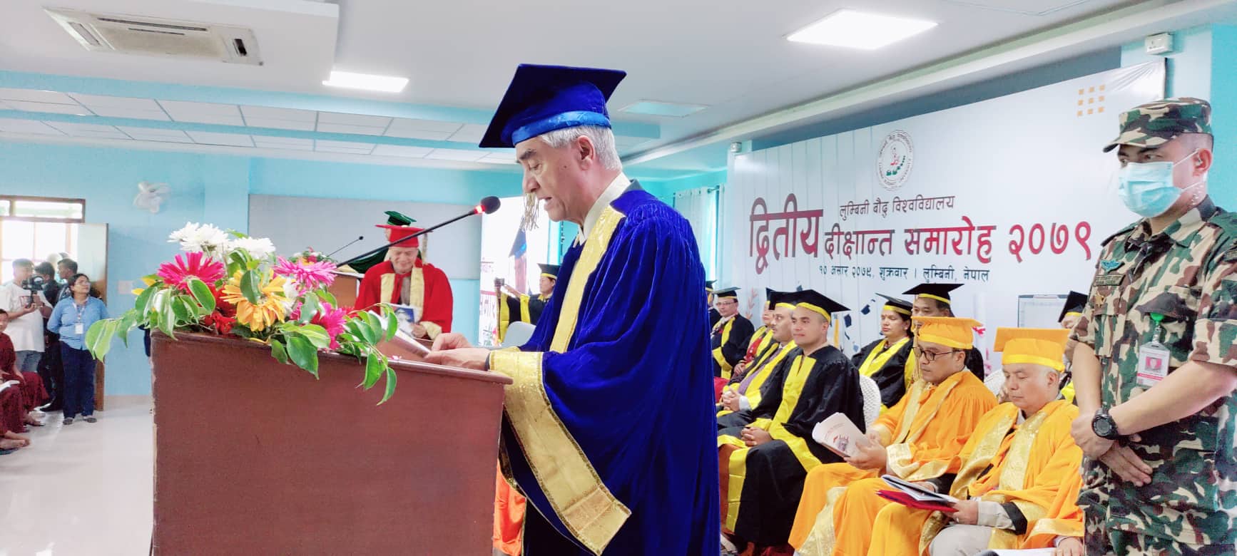 लुम्बिनी बौद्ध विश्वविद्यालयको द्वितीय दिक्षान्त समारोहलाई शुक्रबार लुम्बिनीमा सम्बोधन गर्दै विश्वविद्यालयका कुलपति समेत रहेका प्रधानमन्त्री देउवाले यस्तो बताएका हुन् ।