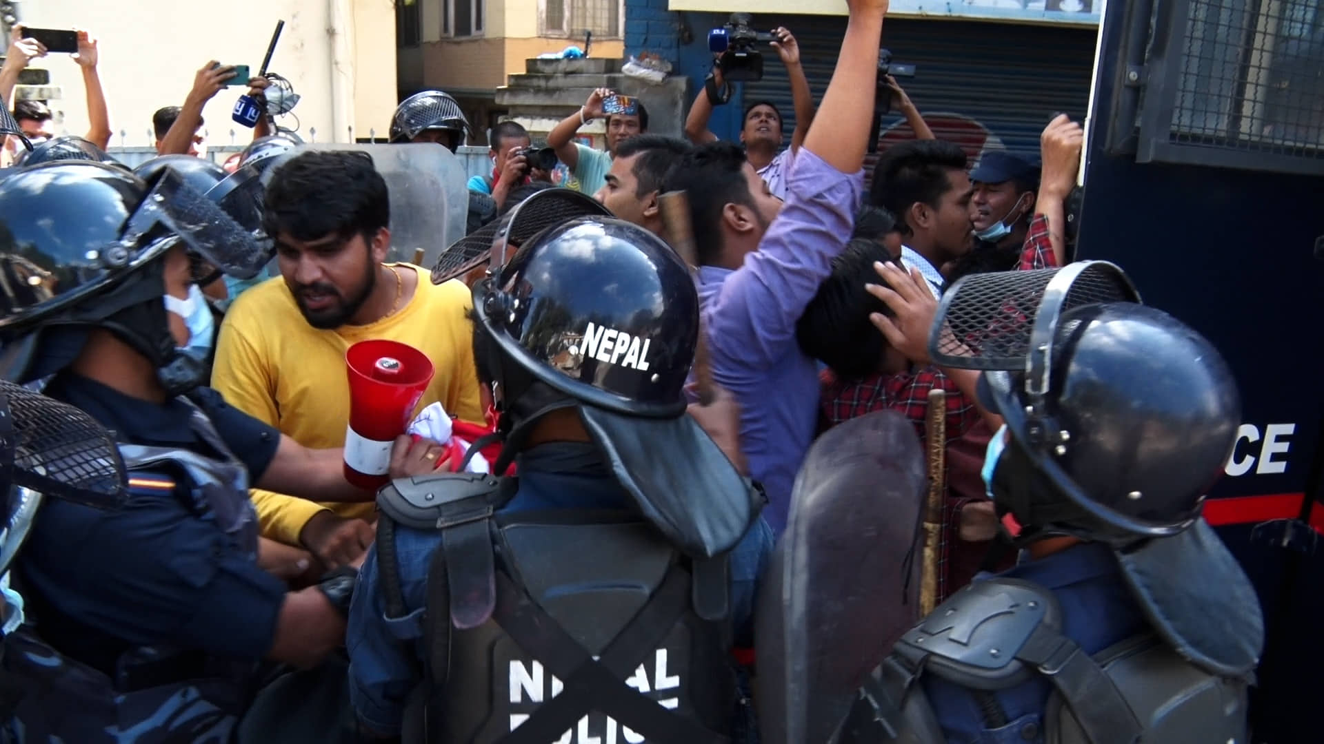 साउन २२, काठमाडौँ | गभर्नर महाप्रसाद अधिकारीको राजीनामा माग गर्दै बालुवाटारमा प्रदर्शन गर्ने नेविसंघ आवद्ध विद्यार्थीहरुलाई प्रहरीले नियन्त्रणमा लिएको छ ।