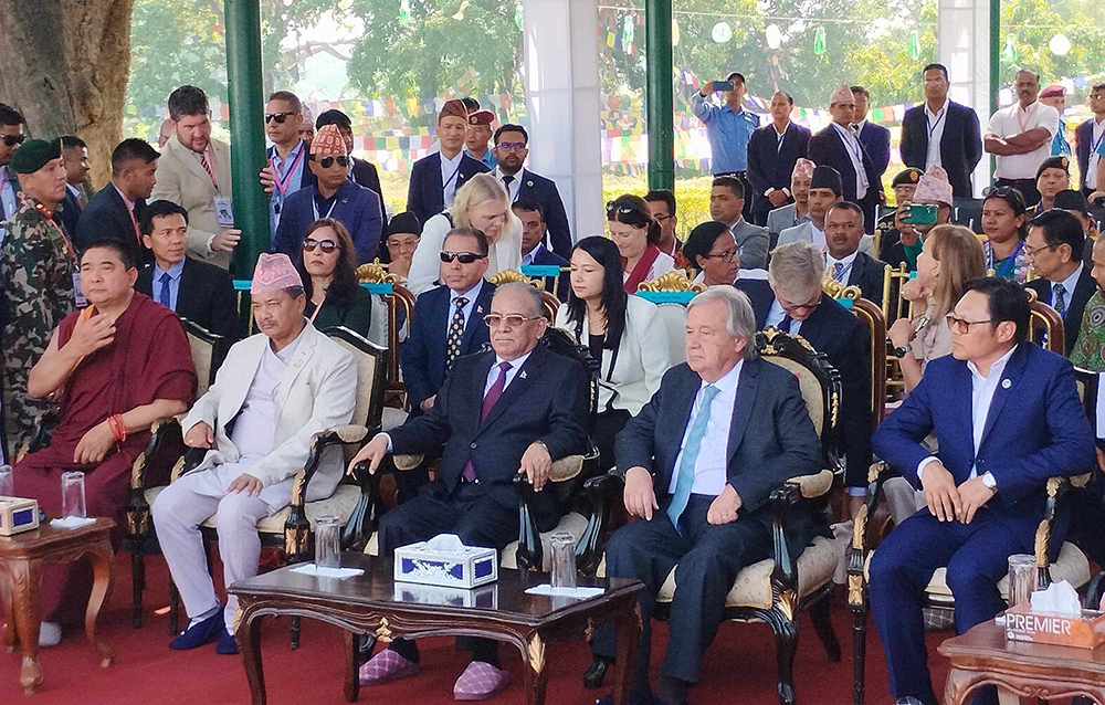 <p><b>कार्तिक १४, काठमाडौँ |</b> संयुक्त राष्ट्रसंघका महासचिव एन्टोनियो गुटेरेस र राष्ट्रिय सभाका अध्यक्ष गणेशप्रसाद तिमिल्सिनाबीच भेट भएको छ। मंगलबार सिंहदरबारस्थित तिमिल्सिनाको कार्यकक्षमा शिष्टाचार भेट भएको हो।</p><p><img src="https://sajhasabal.com/wp-content/uploads/2024/10/bbe2f24b52dd47840a4db5f191a27ad01698749261.jpg" style="width: 716px;"><br></p><p>आइतबार नेपाल...