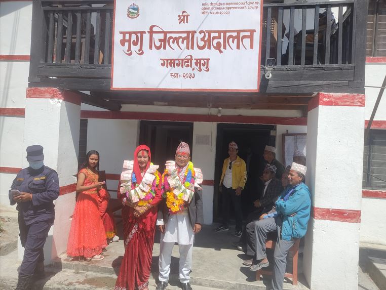 बैशाख ३, मुगु | मुगुमा पहिलो पटक अदालती विवाह (कोर्ट म्यारिज) भएको छ । यसअघि परम्परा, धर्म, सस्कृति तथा रितीरिवाजअनुसार विवाह हुँदै आएकोमा पहिलो पटक अदालतीमार्फत कानुनी प्रक्रिया पूरा गरी विवाह भएको हो ।