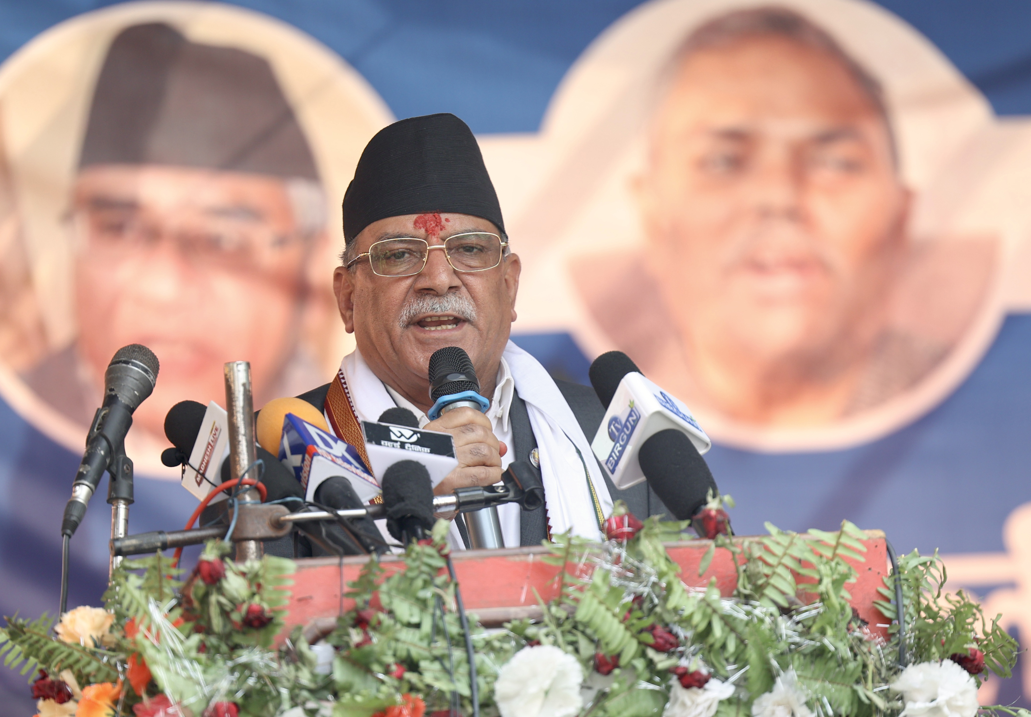 संविधानको रक्षा गर्नका लागि नै पाँचदलीय गठबन्धन भएको जिकिर गर्नुहुँदै नेकपा (माओवादी केन्द्र)का अध्यक्षसमेत रहनुभएका प्रधानमन्त्री दाहालले राष्ट्रिय एकता दिगो शान्ति, विकास, समृद्धि सरकारको पहिलो प्राथमिकता भएको उल्लेख गर्नुभयो । सङ्घीयता, समावेशिता र गणतन्त्रको रक्षाका लागि आन्दोलनको बलमा गठबन्धन बनेको चर्चा गर्नुहुँदै प्रधानमन्त्री दाहालले गठबन्धन पूरै पाँच वर्ष चल्नेमा ढुक्क रहेको बताउनुभयो । मुलुकको अर्थतन्त्र धर्मराएको बेला आफू प्रधानमन्त्री भएको उल्लेख गर्दै उहाँले पछिल्लो समय मुलुकको अर्थतन्त्रले पुनः गति लिन थालेको बताउनुभयो ।