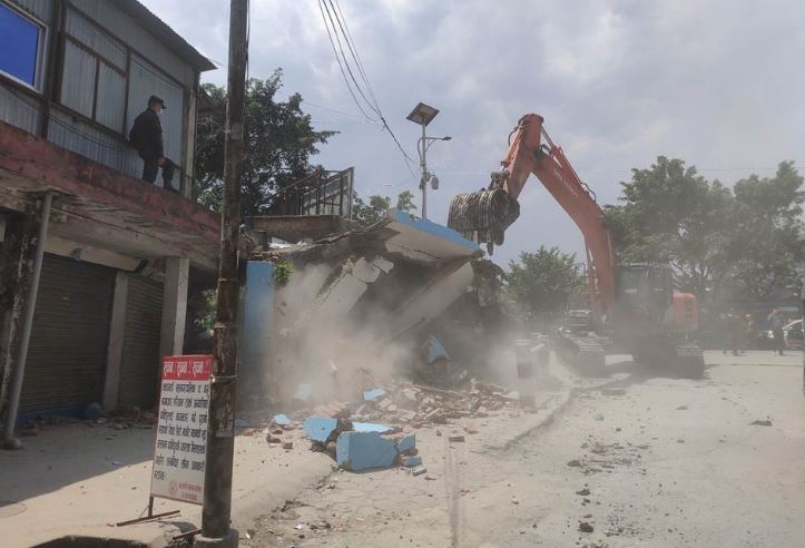 सार्वजनिक जग्गा मिचेर बनाइएको अवैध संरचना हटाउने क्रममा महानगरले डोजर लगाएर संरचना भत्काएको हो । यसअघि मैतीदेवी चेकमा सडक मिचेर बनाइएको प्रहरी बिट पनि भत्काइएको थियो ।