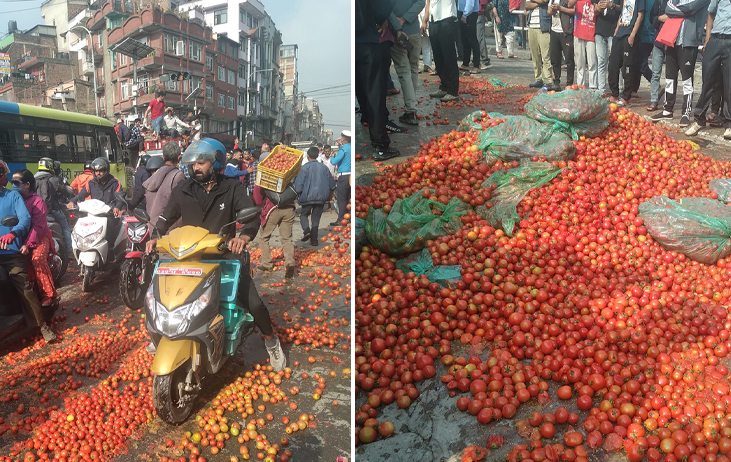 उचित मूल्य नपाएको भन्दै कालीमाटीस्थित तरकारी बजारमा किसानहरुले फाले गोलभेँडा