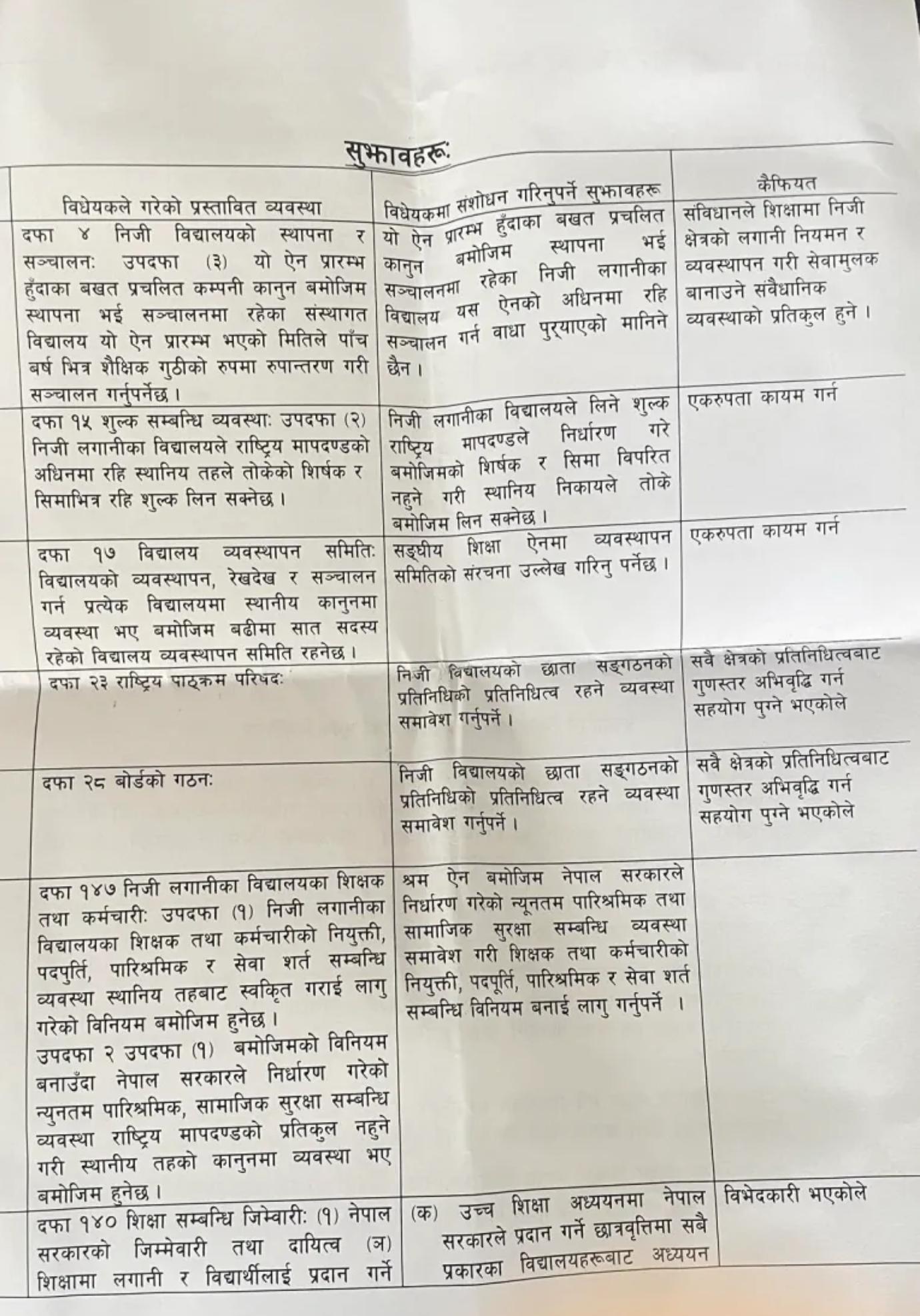 मस्यौदामा ५ वर्षभित्रमा शैक्षिक गुठीको रूपमा जानुपर्ने व्यवस्था गरेको छ। निजी विद्यालय सञ्चालकहरूले उक्त विषयमा गम्भीर आपत्ति जनाउदै आएका छन्।