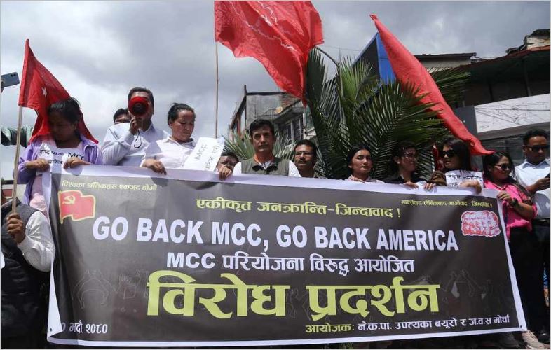 भदौ १०, काठमाडौँ | विप्लव नेतृत्वको नेकपाले मिलेनियम च्यालेन्ज कर्पोरेसन(एमसीसी) कार्यान्वयनविरूद्ध आज देशव्यापी प्रदर्शन गरेको छ ।  संसद्‍बाट व्याख्यात्मक टिप्पणीसहितको १२ बुँदे सम्झौता सम्बन्धमासमेत अमेरिकाले आधिकारिक धारणा सार्वजनिक नगरेको भन्दै नेकपाले देशव्यापी विरोध प्रदर्शन गरेको हो ।