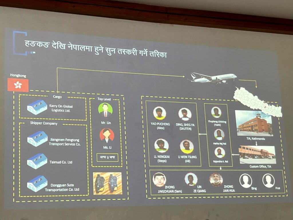 सीआईबीका अनुसार चिनियाँ गिरोहले भन्सारको सामानमा राखेर संगठितरुपमा नेपालमा सुन तस्करी गर्ने गरेका थिए ।