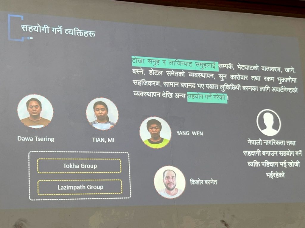 उनले चिनियाँ गिरोहको माथिल्लो तह हङकङमा बस्ने गरेको र विभिन्न तहहरू सृजना गरी तस्करी हुने गरेको बताए । माथिल्लो तहका व्यक्तिहरू नेपालमा आउने जाने समेत गर्ने गरेको सीआईबीको भनाई छ ।