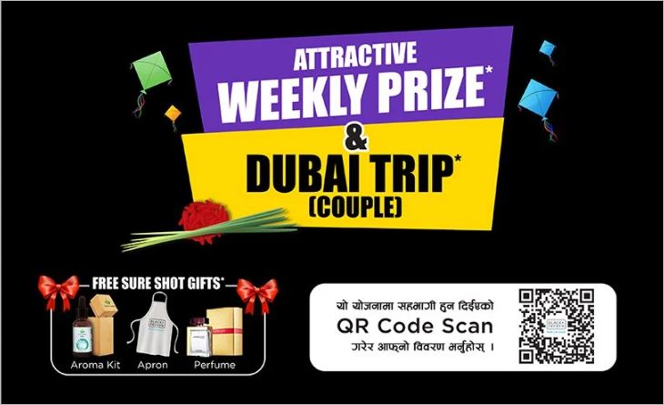 ब्ल्याक प्लस डेकरको कुनै पनि उपकरणको खरिद गर्दा हरेक हप्ता एकजना भाग्यशाली विजेताले पनि उपहार जित्न सक्नेछन् । उपकरण खरिद गर्नेहरू मध्ये एकजनाले बम्पर उपहारको रूपमा एक जोडीले दुबई भ्रमण गर्ने मौका पाउनेछन् ।