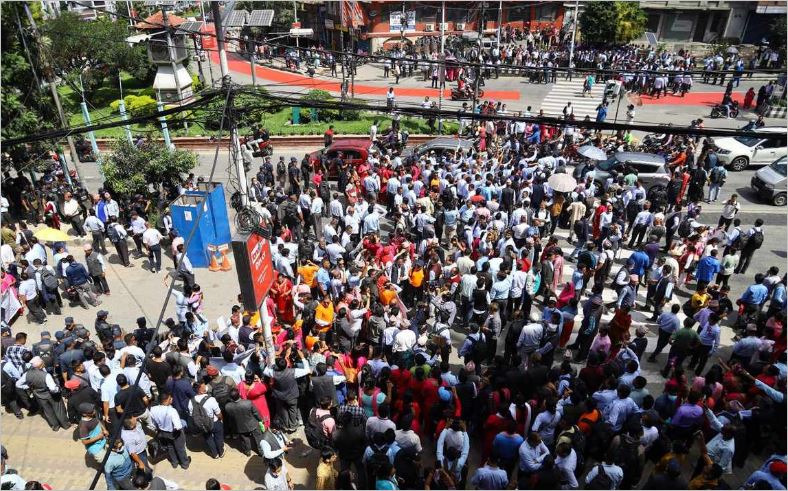 असोज ३, काठमाडौँ | विद्यालय शिक्षा विधेयकको विरोधमा नेपाल शिक्षक महासंघको अगुवाइमा राजधानीमा भएको प्रदर्शनका कारण यातायात अस्तव्यस्त बनेको छ। राजधानीका माइतीघरमा भेला भएका शिक्षकहरूले आन्दोलन गरिरहेका हुन् ।