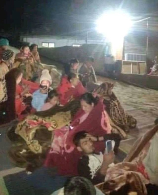भूकम्पले घरहरू भत्किएपछि नागरिकहरू बाहिर चौरमा बसेका छन् । अस्पतालहरू घाइतेले भरिएका छन् ।