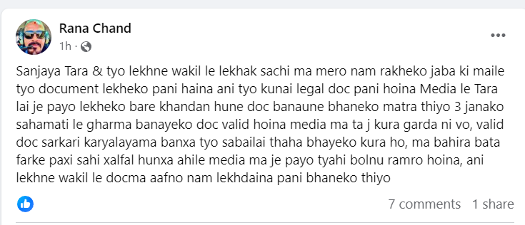 सार्वजनिक भएको उक्त लिखित सहमतिअनुसार उनीहरुबीच विवाह गर्ने समझदारी भएको बताईएको थियो । तर, सहमति भएको दुई दिन बित्न नपाउँदै पूर्व आईजी चन्दले उक्त लिखित सहमतिबारे मुख खोलेका छन् । उनले उक्त सहमति कुनै कानूनी डकुमेन्ट नभएको दाबी गरेका छन् ।