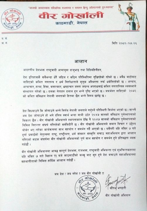 वीर गोर्खाली अभियानले एक प्रेस वक्तव्य जारी गर्दै बल्खुबाट सुरु हुने कार्यक्रममा सहभागी हुने जानकारी दिएको हो ।