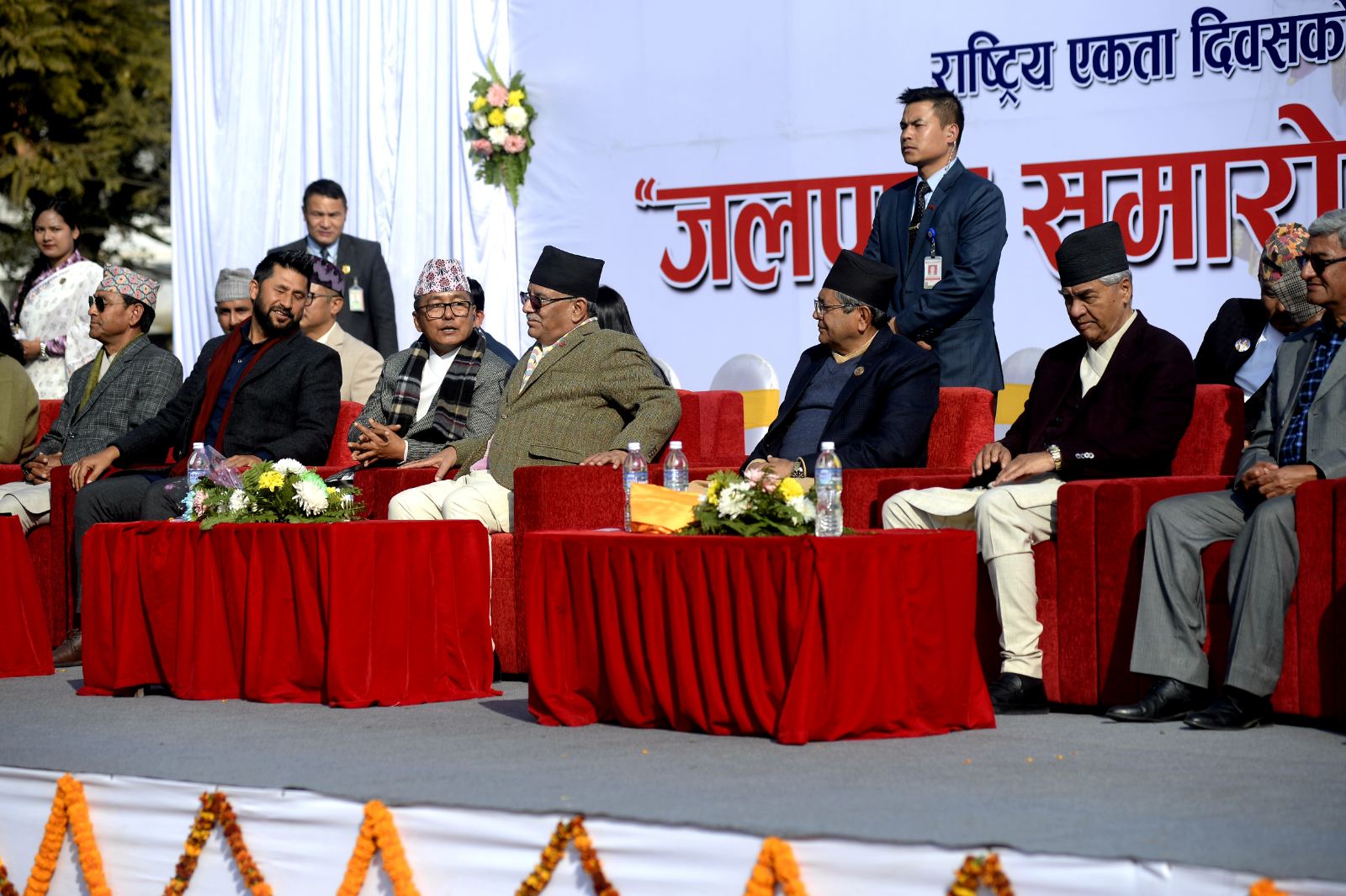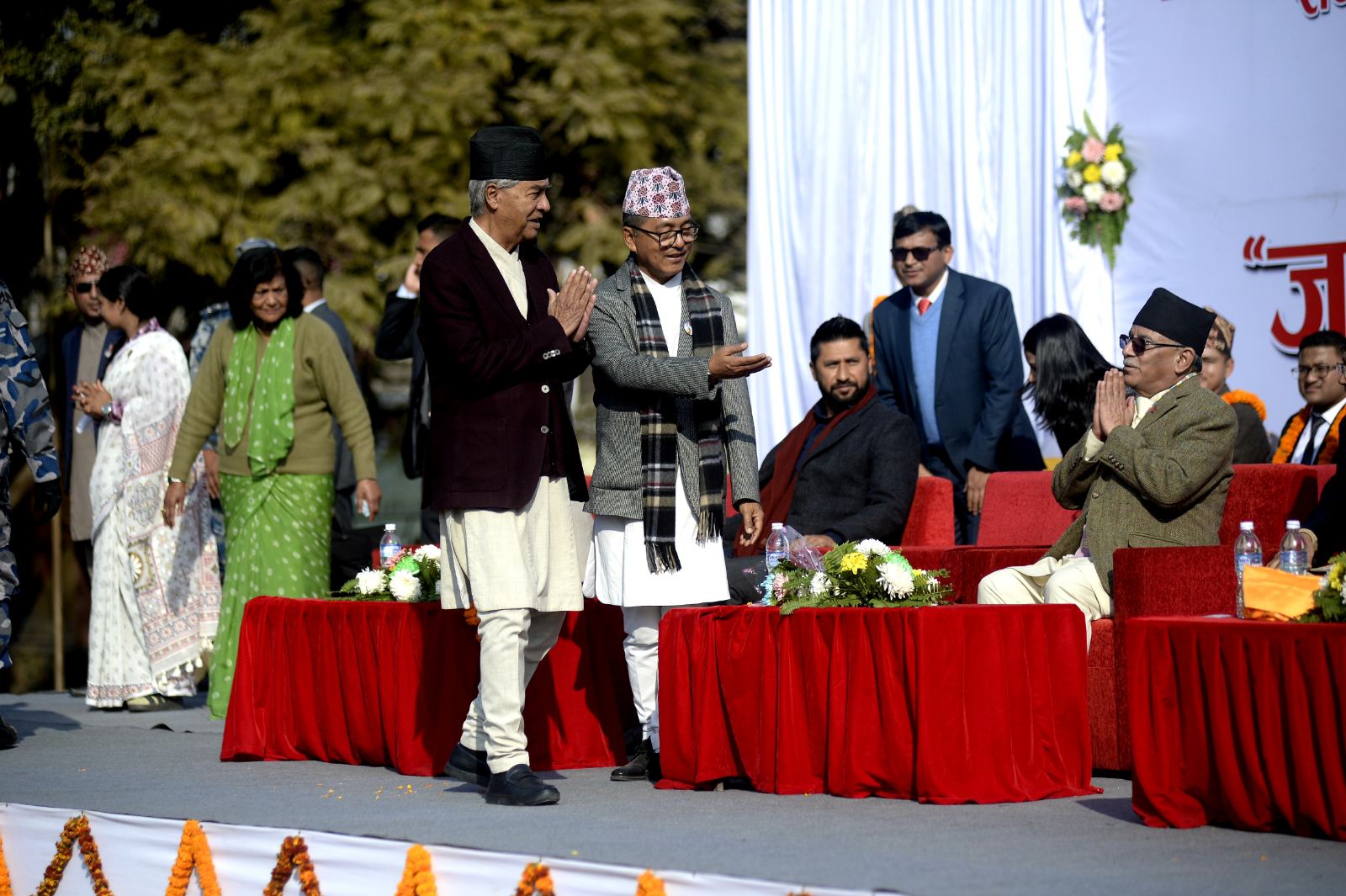 काठमाडौंको भृकुटीमण्डपमा शुक्रबार भएको जलपानमा सभामुख देवराज घिमिरे, नेपाली कांग्रेसका सभापति शेरबहादुर देउवा, राष्ट्रिय स्वतन्त्र पार्टी (रास्वपा) का सभापति रवि लामिछानेलगायत सहभागी भएका छन्।