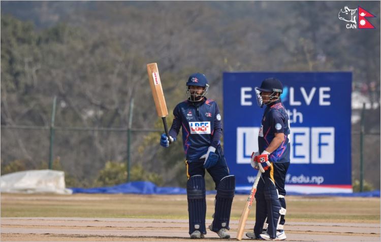 करण केसीले २७ बलमा ५ चौका र ५ छक्कासहित ५७ रनको विष्फोटक इनिङ खेले ।