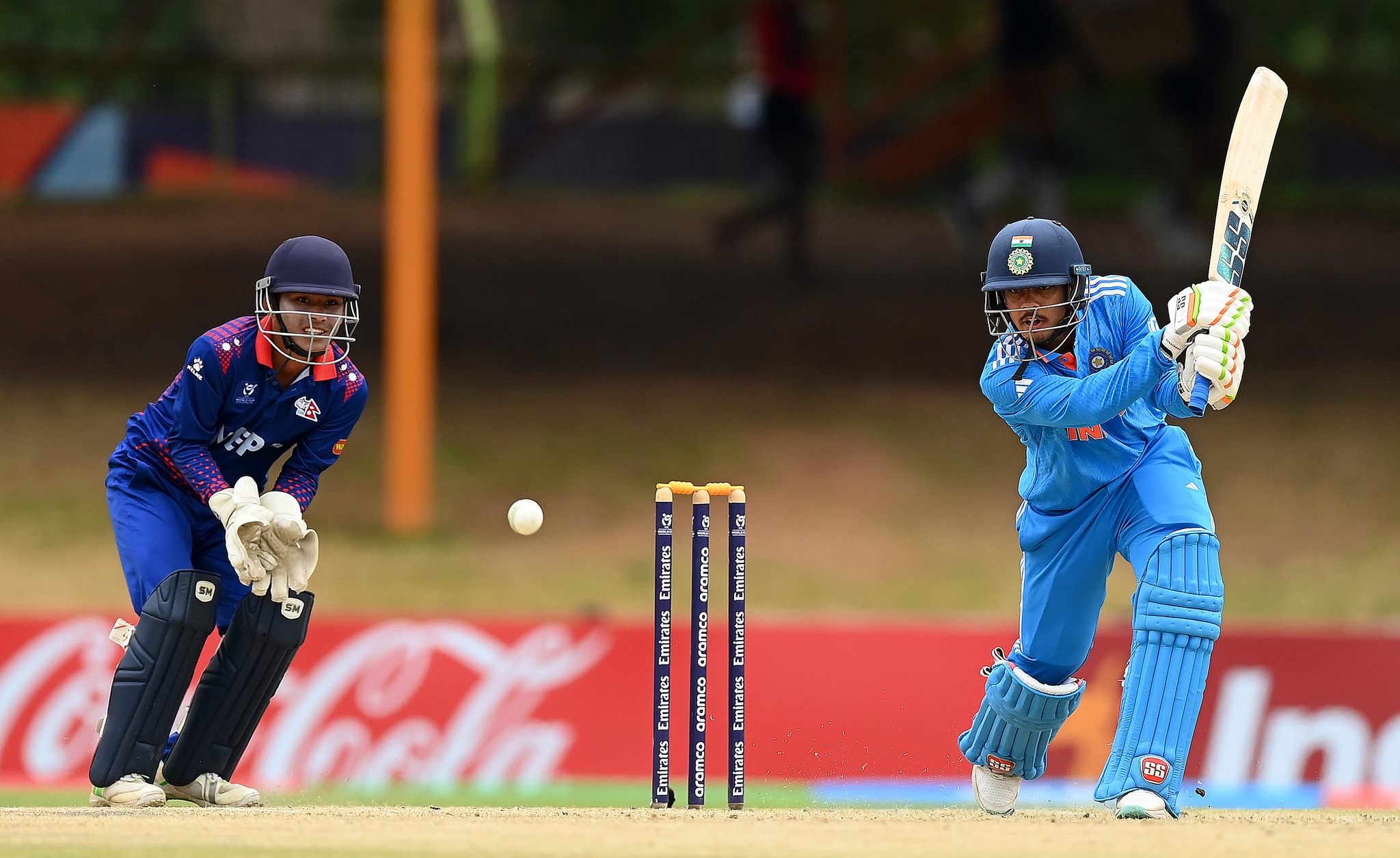 उदय ६८ र सचिन ५२ रनमा अविजित छन् ।भारतले ३६ ओभरमा ३ विकेट गुमाए १८३ रन बनाएको छ । उदय र सचिनको साझेदारीमा भारत ठूलो स्कोरतिर उन्मुख छ ।भारतका प्रीयान्शु मोलिया १९, अर्शिन कुलकणी १८ र आदर्श सिंह २१ रनमा आउट भए । बलिङमा नेपालका आकाश चन्द र गुल्सन झाले १-१ विकेट लिएका छन् ।