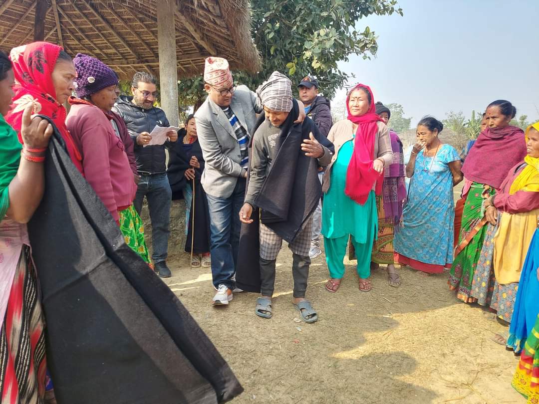 एक वर्षअघि खरिद गरि राखिएको कम्बल जाडो सकिन लागेपछि पालिकाले वितरण गरेको छ। पुस मसान्तमा ह्वातै  चिसो बढेर जनजीवन प्रभावित बने पनि कम्बल जाडो कम हुँदै गएपछि वितरण गरिएको छ।
