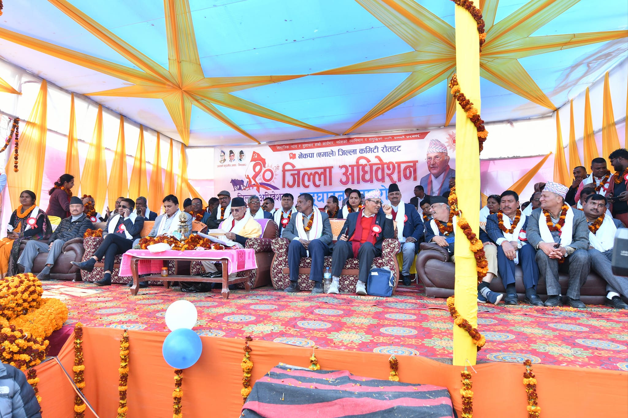 माघ २५, काठमाडौँ |  रौतहटको गरुडामा नेकपा एमालेका अध्यक्ष तथा पूर्वप्रधानमन्त्री केपी ओलीलाई १०१ किलोको फूलको माला लगाएर स्वागत गरिएको छ । नेकपा एमालेको रौतहटको १०औँ  जिल्ला अधिवेशनमा प्रमुख अतिथिको रुपमा सहभागी अध्यक्ष ओलीलाई १०१ किलोको माला लगाएर एमाले जिल्ला कमिटी रौतहटले स्वागत गरेको हो।