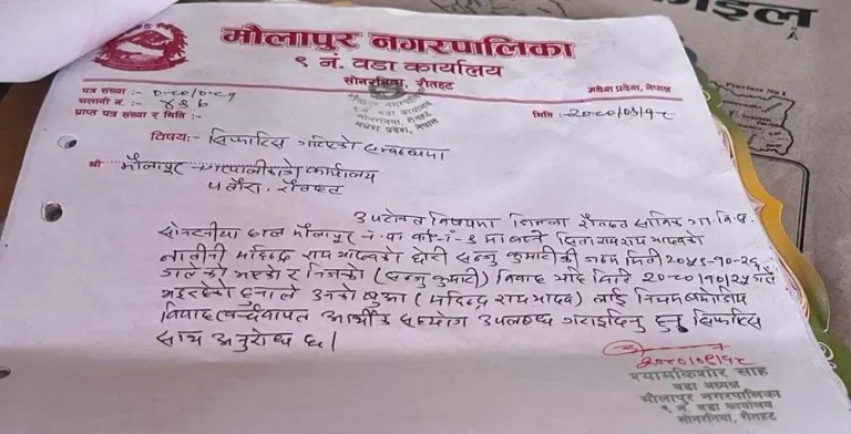 माघ २५, काठमाडौँ | मौलापुर नगरपालिकाले आफ्नो पालिकाभित्र कसैले छोरीको बिहे गर्दैछ भने ३० हजार रुपैयाँ बिहे खर्च दिने स्थानीय सरकारले कार्यक्रम ल्याएको छ । सरकारले नै त्यसरी बिहे खर्च दिनु उचित हो कि होइन भन्ने बहस एकातिर छँदैछ, अर्कोतिर नक्कली बिहेको कागज बनाएर ३० हजार लिने कार्यमा वडाध्यक्ष र कर्मचारीको मिलेमतो हुने गरेको पाइएको छ ।