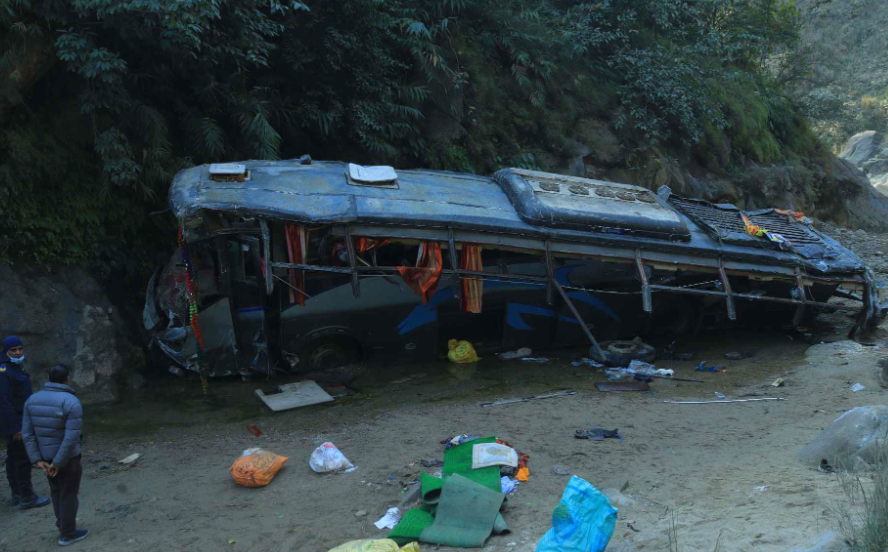 फागुन ३, काठमाडौँ | “राति ९ बजेतिर कोहलपुरमा खाना खाएपछि काठमाडौँतर्फ अघि बढेको बसको सिटमा म निदाउन आँटेकी थिएँ, बस तीव्र गतिमा भएर होला पहाडमा ठोक्किँदा ठूलो आवाज आयो”, बुटवलस्थित चौराहा अस्पतालमा उपचाररत ५५ वर्षे यात्रु नारायणी थापाले सुनाइन् । उनी छोरीसँगै काठमाडौँ जान बुधबार दिउँसो साढे दुई बजे महेन्द्रनगरबाट छुटेको गाडी चढेकी थिइन् ।