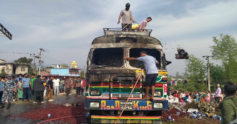 कैलालीमा ट्रकमा आगलागी