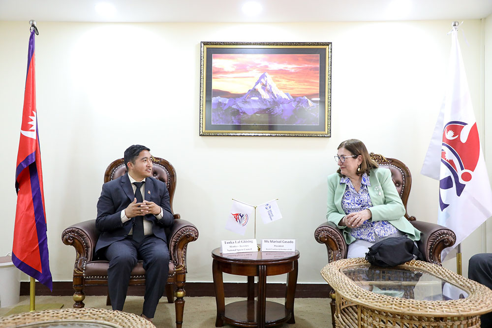 बैशाख १३, काठमाडौँ । राष्ट्रिय खेलकुद परिषद्का सदस्य–सचिव टंकलाल घिसिङ र विश्व ट्रायथलन महासंघकी अध्यक्ष एवं अन्तर्राष्ट्रिय ओलम्पिक कमिटीकी सदस्य मारिसोल कासाडोबीच भेटवार्ता भएको छ ।