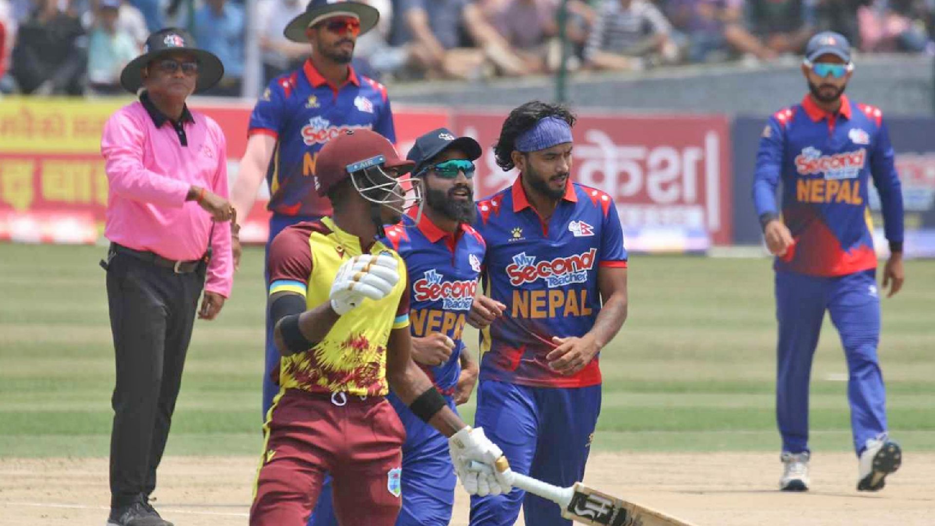 वैशाख १९, काठमाडौँ । नेपालले पहिलो विकेट लिएको छ । टस जितेर पहिला ब्याटिंग गरिरहेको वेस्ट इन्डिज ए का एलिक अथानाज खेलको चौथो ओभरमा रनआउट भएका छन् ।  उनी १७ रन बनाएर आउट भएका हुन् ।