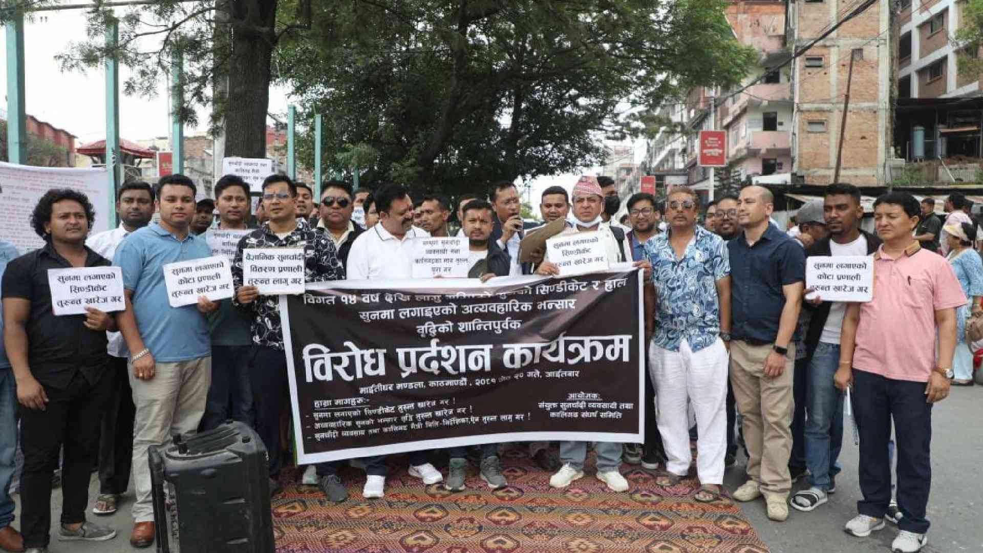विगत १४ वर्षदेखि लागु गरिएको सुनको कोटा प्रणाली खारेज गर्न माग गर्दै उनीहरुले आइतबार काठमाडौँको माइतीघर मण्डलामा प्रदर्शन गरेका हुन्।