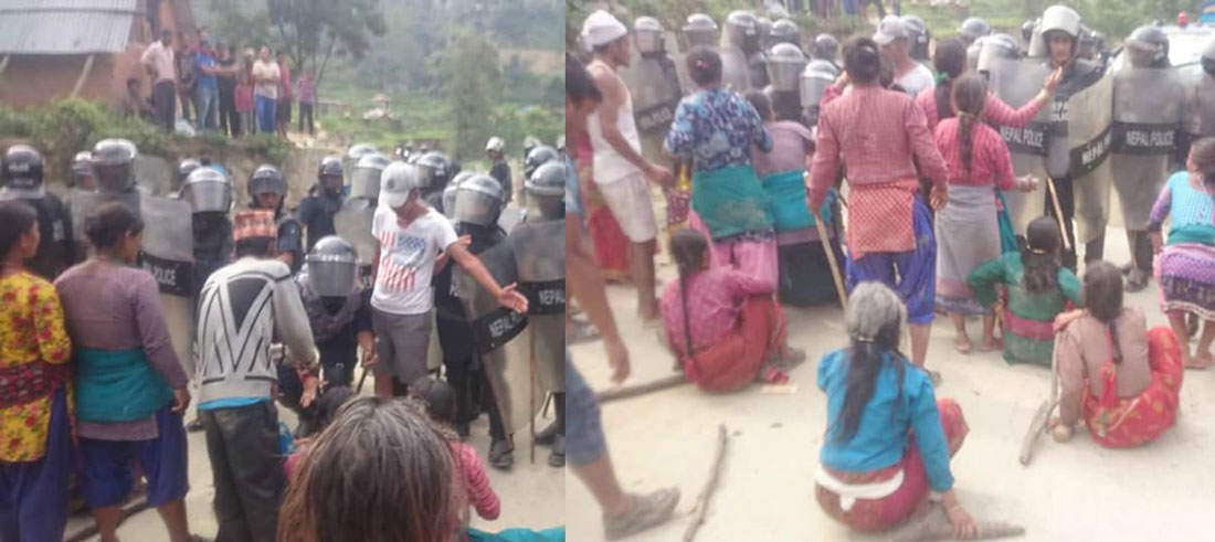 स्थानीय श्रीहरि ढकालले दिएको जानकारी अनुसार करिब दुई घण्टादेखि स्थानीय र प्रहरीबीच झडप जारी रहेको छ । यसक्रममा प्रहरीले डेढ दर्जन बढी स्थानीयलाई पक्राउसमेत गरेको ढकालले बताए । ‘घर–घरभित्र छिरेर प्रहरीले महिलालाई समेत पक्राउ गरेका छन्,’ उनले भने ।