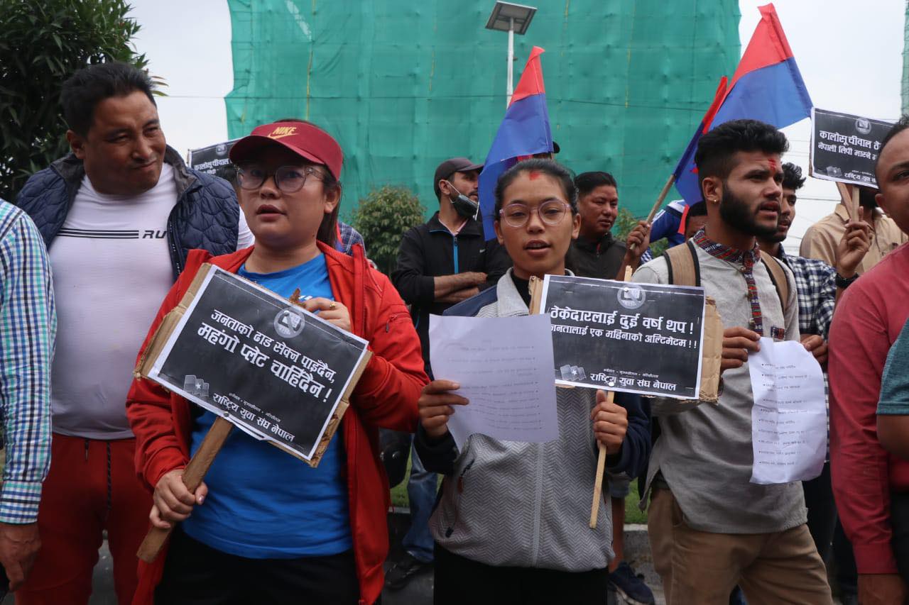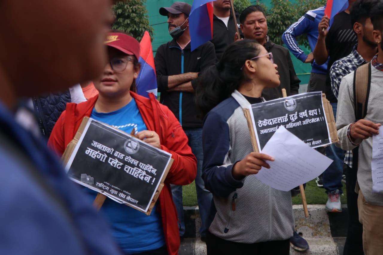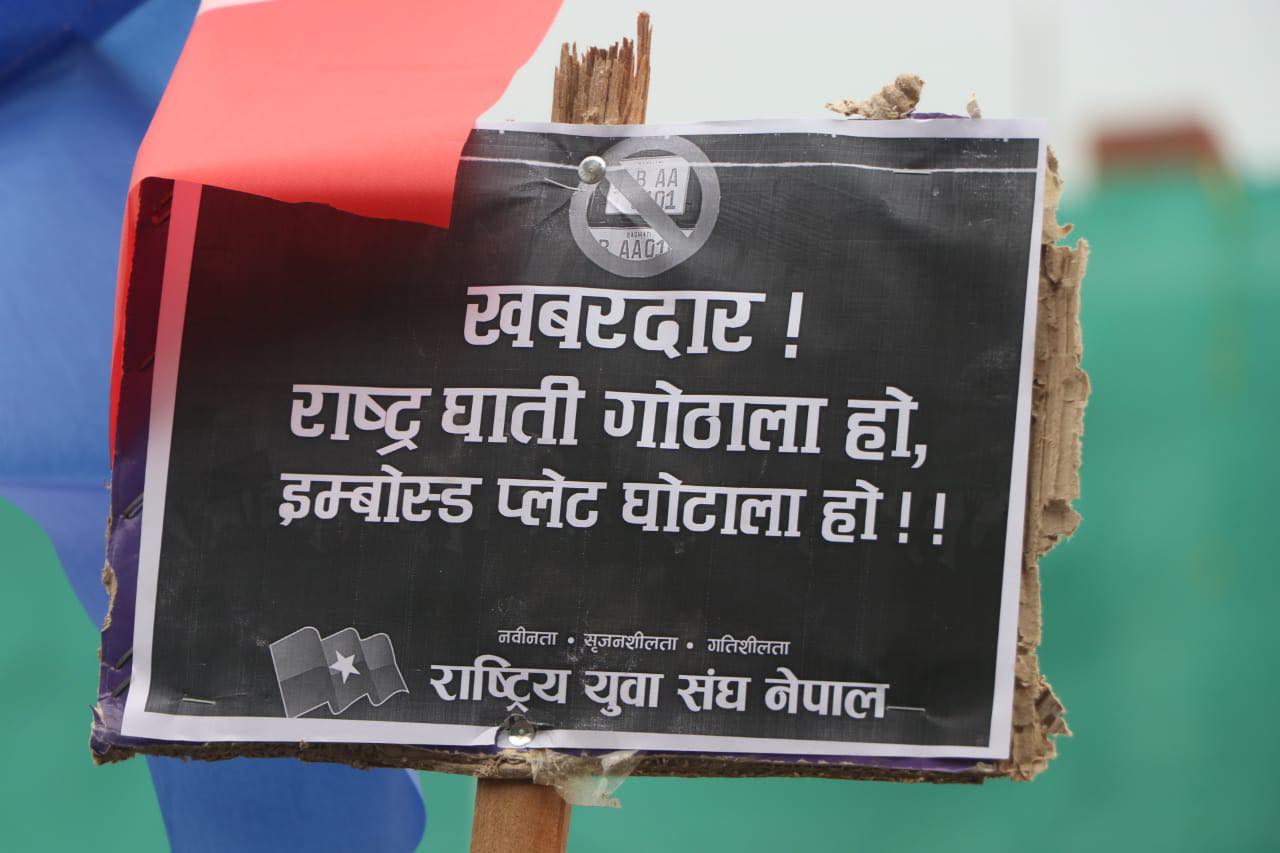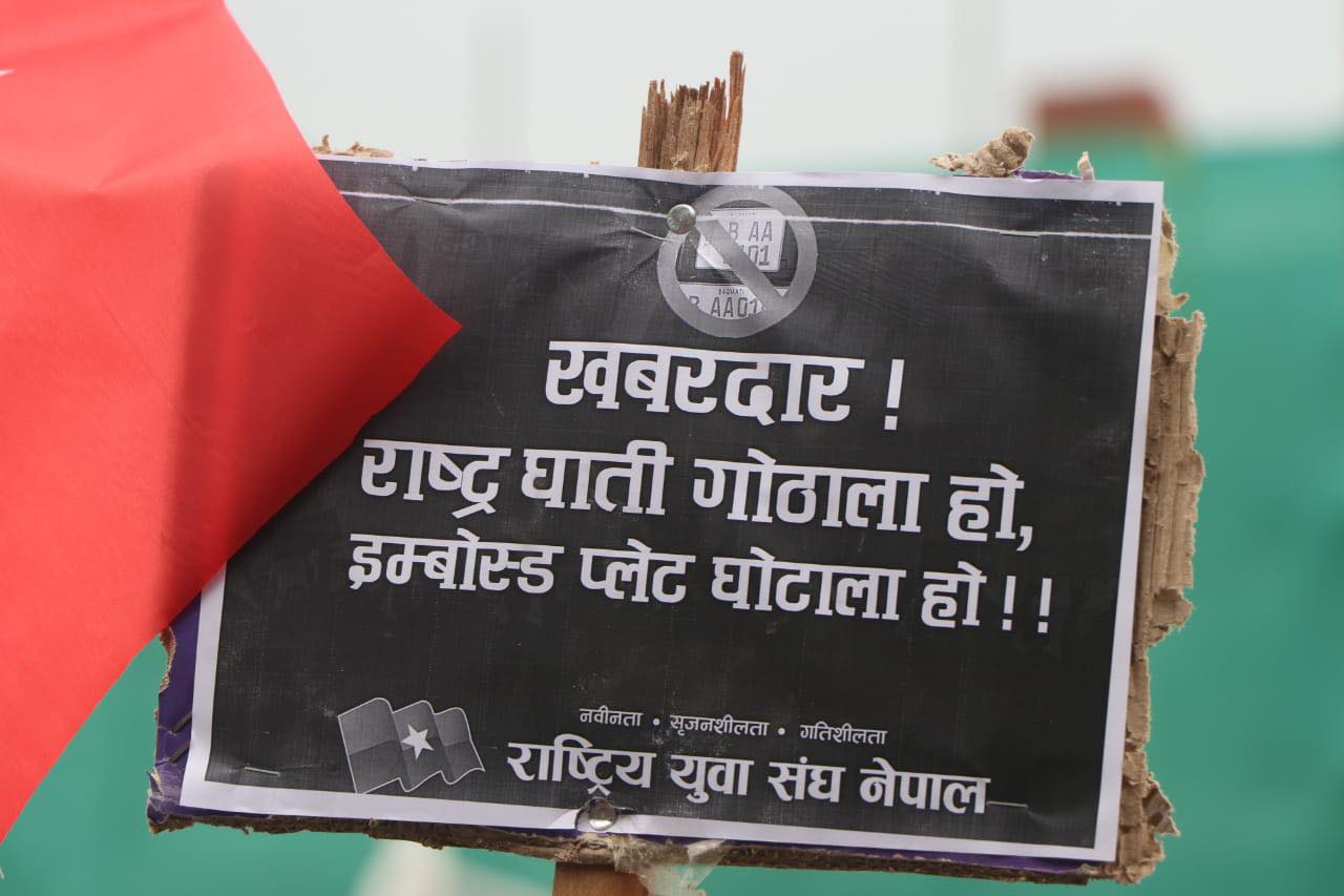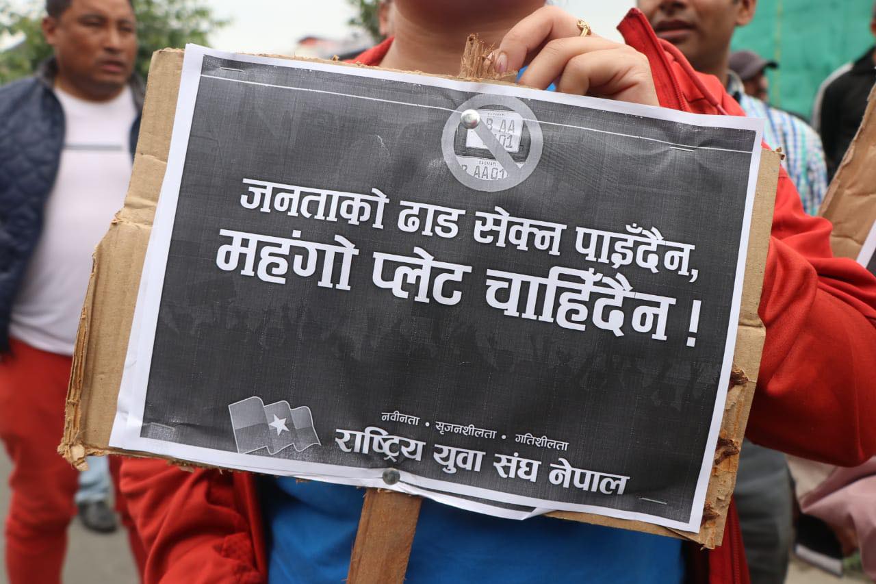 जेठ २४, काठमाडौँ | सरकारले आवश्यक संरचनानै नबनाइ सवारीसाधनधनीलाई जबर्जस्ती एम्बाेस्ड नम्बर राख्न अल्टिमेटम दिएकाे भन्दै विराेध प्रदर्शनमा उत्रिएका सर्वसाधारण । उनीहरूले ठेकेदार पाेस्ने काम बन्द गर्न र निर्णय फिर्ता लिन माग गरेका छन् ।