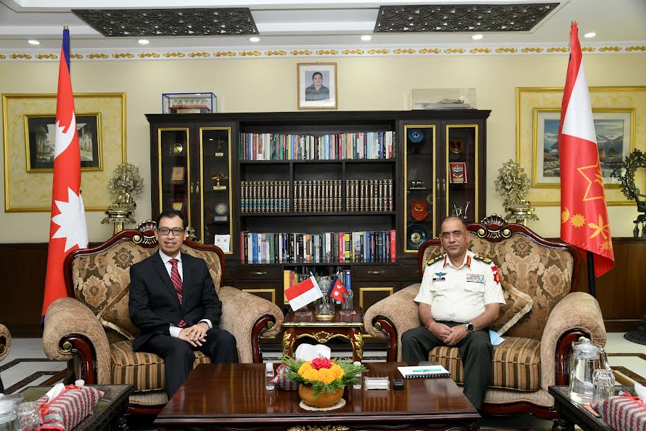 जेठ २७, काठमाडौँ | नेपालको लागि इण्डोनेसियाका गैर–आवासीय राजदूत हेरु हार्टएन्टो सुबोलोले प्रधानसेनापति प्रभुराम शर्मासँग शिष्टाचार भेट गरेका छन् ।