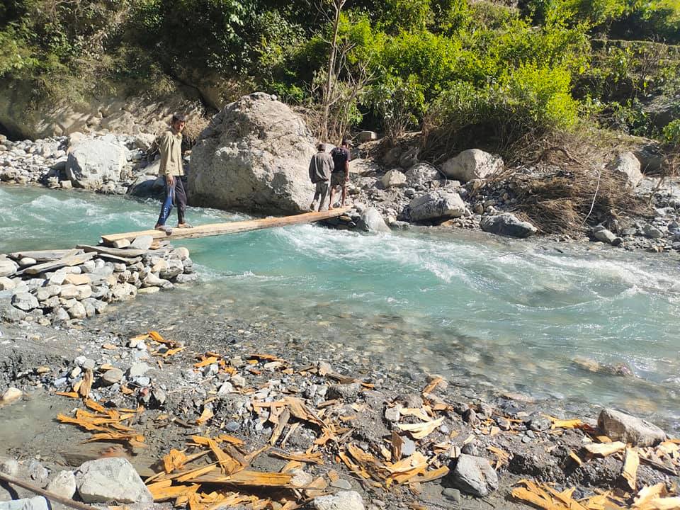 गत कात्तिकमा बाढीले त्यहाँको झोलुङ्गे पुल बगाएपछि स्थानीयले काठको पुल बनाएका अस्थायीरूपमा काम चलाउँदै आएका थिए ।