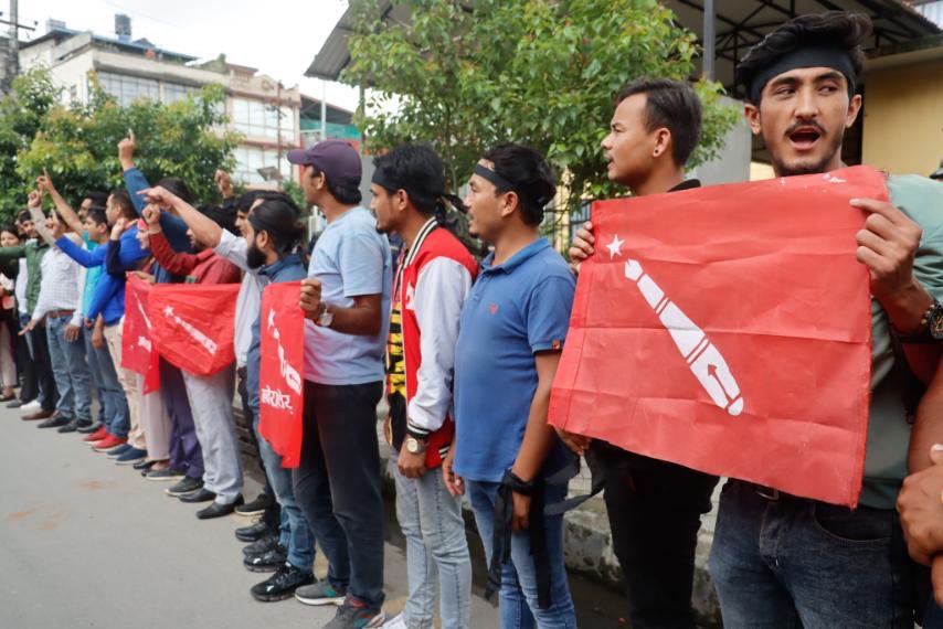 साउन १८, काठमाडौं | पेट्रोलियम पदार्थको मूल्य समायोजन गर्न माग गर्दै एमाले निकट विद्यार्थी संगठन अनेरास्ववियुले नेपाल आयल निगम घेराउ गरेको छ ।