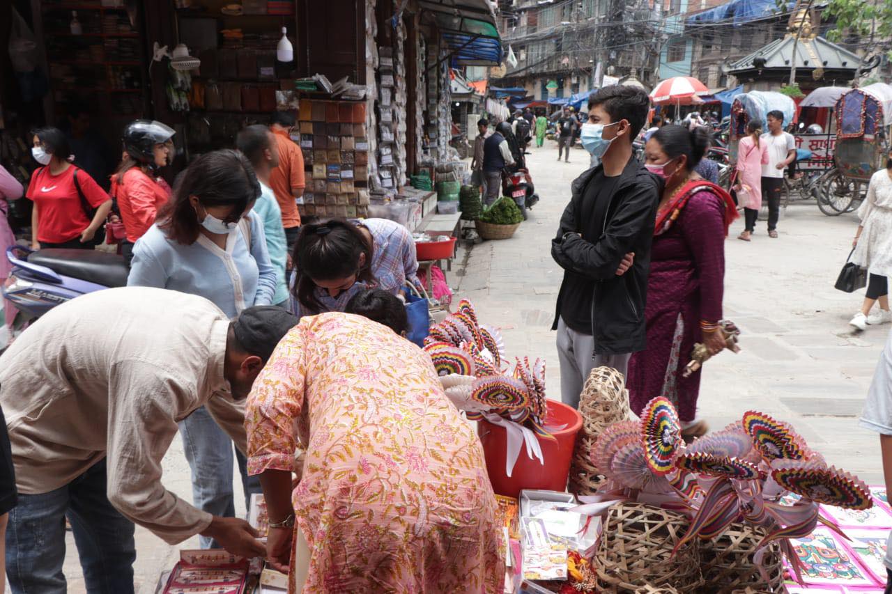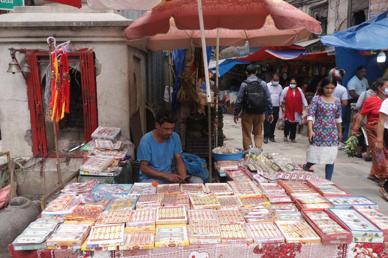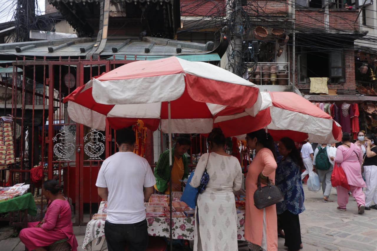 साउन २६, काठमाडौँ । काठमाडौंका प्रमुख बजारहरूमा रक्षाबन्धनको अघिल्लो दिन बिहीबार सामान्य दिन भन्दा भिडभाड देखिएको छ । रक्षाबन्धनका लागि आवश्यक सरसामान किनमेल गर्नेहरूका कारण बजारमा भिड बढेको हो । काठमाडौंका न्यूरोड, असन, इन्द्रचोक, नयाँ बानेश्वर, चाबहिल लगायतबजारमा बिहानैदेखि विशेष चहलपहल छ ।