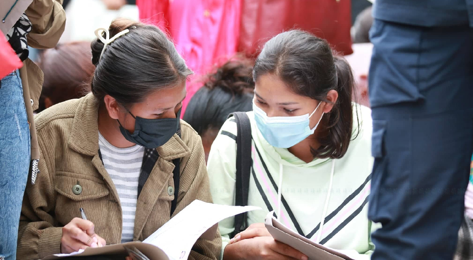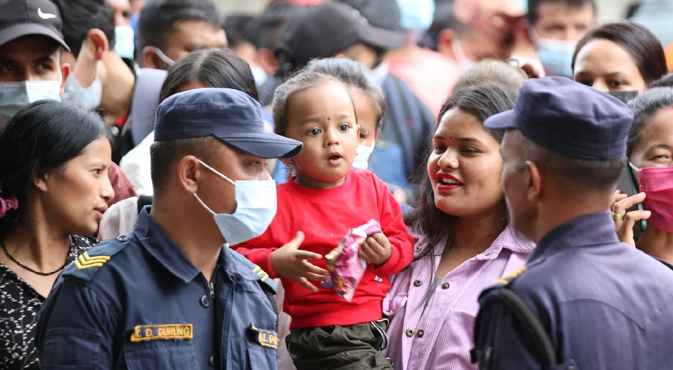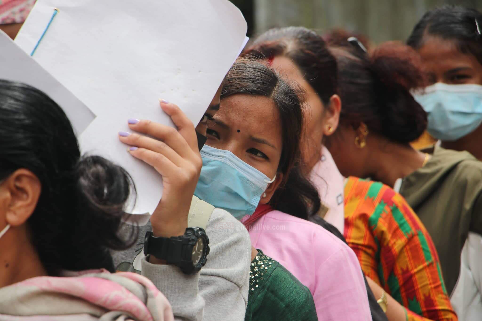 दरखास्त फारम बुझाउने पहिलो दिन जिल्ला प्रहरी परिसर काठमाडौंमा युवाहरूको भीड लागेको छ।
