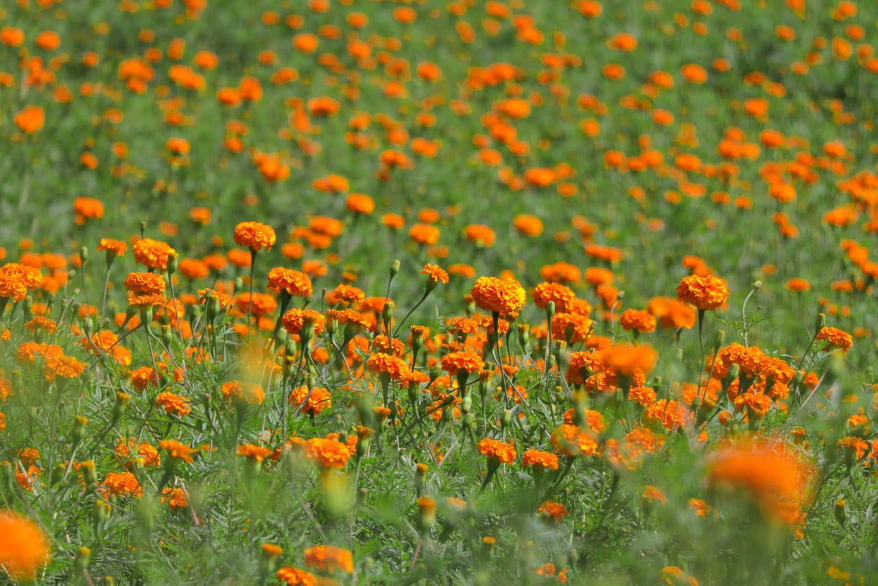 असोज ३१, काठमाडौँ | भक्तपुरको गुन्डु र आसपासको क्षेत्रमा फूलेका मखमली र सयपत्री फुल । तिहार नजिकिएसँगै यसरी ढकमक्क फुल फुलेर गाउँ बस्ती निकै मनमोहक बनेको छ । भक्तपुर र ललितपुरका फुल खेती गर्ने किसानले हरेक वर्ष तिहारमा मखमली र सयपत्री बेचेर मनग्गे आम्दानी गर्ने गरेका छन् । यद्यपि, भारतीय बजारबाट सस्तोमा फुल आउँदा मर्का परेको उनीहरूको भनाइ छ ।