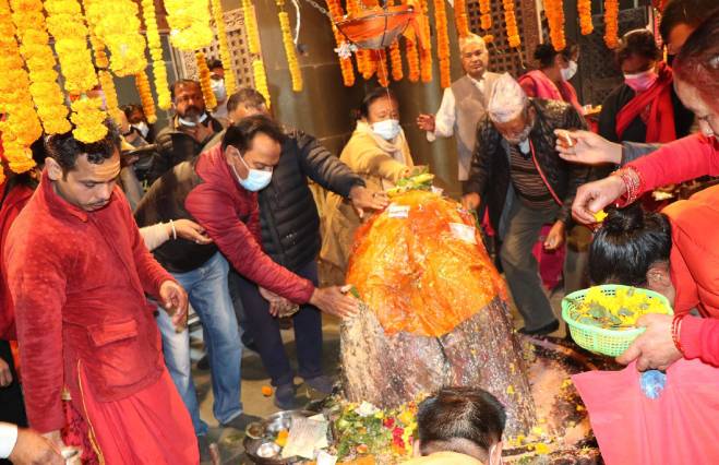 महाशिवरात्रि पर्वको अवसरमा डोलेश्वर महादेव मन्दिरमा दर्शनार्थीको बिहान ४ बजेदेखि नै भीड ला"/>