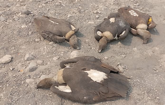 वन अधिकृत मोहनराज काफ्लेले पाँच गिद्ध मृत अवस्थामा र दुई घाइते अवस्थामा फेला परेको जानकारी दिनुभयो । “गिद्ध मरेको ठाउँमा एउटा स्याल पनि मरेको भेटिएको छ” उहाँले भन्नुभयो, “स्यालको विषाक्त मासु खाएर गिद्ध मरेको हुनसक्ने प्रारम्भिक अनुसन्धानबाट खुलेको छ ।”